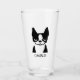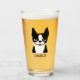 Enjoy a pint of your favourite cold beverage out of this unique 16 oz drinking glass. Cute black and white Boston Terrier with custom text for your name or slogan. Makes a fun personalised gift. Visit Jenn's Doodle World for more custom drinkware and dog breed designs.