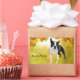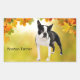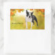 These stickers feature a black and white boston terrier dog with an autumn leaf background