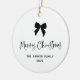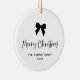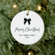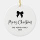 This elegant and chic, black and white holiday ornament says "Merry Christmas" in whimsical script. A trendy, black coquette bow is featured on the front. You can change the bow and text to any colour. Add your favourite family photo to the back.