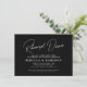 This simple wedding Rehearsal Dinner invitation features elegant script text on a black background.