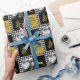 Black and White Buffalo Plaid Gold Holiday Photo Wrapping Paper