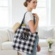 Black and White Buffalo Plaid Monogram Custom Tote Bag