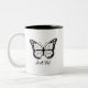 minimalist, simple, black and white butterfly mug with an inspirational quote