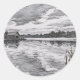 Classic black and white image of a quiet cabin by the lake. Elegant and timeless for monochrome art lovers.