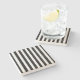The coasters are gorgeous, a quality feel and heavy weight. They look like a precious archeological find. A rustic stone juxtaposed with a modern floral black and white print. I like the way the print goes slightly imperfect on the cut stone edges giving them a kind-of natural beauty.