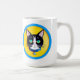 Black and White Cat Illustration with Blue Eyes Coffee Mug