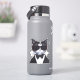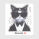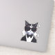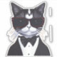 A black and white tuxedo car dressed appropriately in a classic tuxedo with black bow tie, and black sunglasses