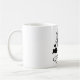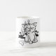 A cute cartoon style design of a black and white cat. This cat is sitting up and with his tongue out. The cat is mostly white and has a black background. This black and white cat design looks great on this mug. Perfect for yourself or as a gift