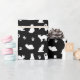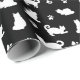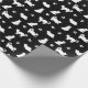 This gift wrapping paper features a cute pattern of white cats and paw prints on a black background, perfect for Christmas or Birthday gift giving for a cat lover.