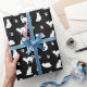 Black and White Cats and Paw Prints Pattern Wrapping Paper