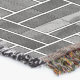 Throw blanket decorated with a black and white, ceramic effect pattern.
