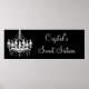 A sleek and classic white chandelier on a black background. A wonderful Sweet Sixteen birthday party poster! Select the customise button to change the font style, colour and size.