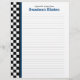 Letterhead designed to fit Grandma's Kitchen Recipe Binder, this has a black and white chequerboard image along the side with a blueaccent line. You will need to punch holes along the side of the pages to add this letterhead to a binder.
