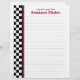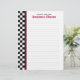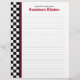 Letterhead designed to fit Grandma's Kitchen Recipe Binder, this has a black and white chequerboard image along the side with a red accent line. You will need to punch holes along the side of the pages to add this letterhead to a binder.