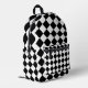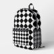 Backpack all over print cut sew style storage bag printed with Black And White Chequerboard Chequered Flag Design graphic art illustration and select products collection by TheFabricSeal print on demand shop at Zazzle.com #ZazzleMade https://www.zazzle.com/store/thefabricseal TheFabricSeal©️Original.