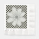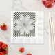 The clean, bold lines of this napkin designed by digital artist, Leslie Sigal Javorek, is a perfect choice for modern and neutral urban sophisticated interior decorating styles in your home or office. Featured is a large central white & grey daisy (painted in a manner to suggest diamonds) that intersects a broad ribbon of black & white marbled chequerboard all centred and set against a solid black field.