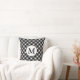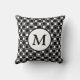 A simple and elegant black and white decorative chequered board pattern with monogram in black lettering on a white circular background.