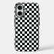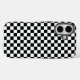 Black and white chequerboard pattern with evenly spaced, alternating squares. The design creates a classic, symmetrical look commonly seen in chessboards.
