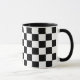Simple black and white chequerboard pattern. This mug was created years back when the print area was slightly different. But, you can still customise the pattern by filling the print area with the image and changing the background colour. We've displayed this on the ringer mug because it is attractive, but it works with the basic mug too.