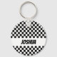Cool custom keychain has a black and white chequered flag design on the front. Personalise it by changing the name to whatever you like. This would make a great gift for the race car enthusiast in your life. Please see our other custom chequered flag items.