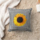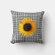 Chic designer accent throw pillow done in a black and white chequered pattern. Graphics of a large sunflower bloom decorates the middle front of the pillow. Lovely way to add a pop of colour in any room of the house or office.
