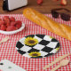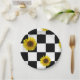 Black and White Chequered & Sunflower Print Paper Plate