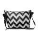 This messenger bag is the perfect size for diapers, bottles and everything your little one needs! Personalise it with a name, or leave it blank for a stylish bag that can be used for years after your baby has outgrown a diaper bag. Features a modern black and white chevron pattern and a blue anchor that is up to date with all the trends!