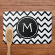 A modern bathmat featuring a timeless black and white chevron design that effortlessly complements any bathroom aesthetic. A circle emblem in the middle to add your initial.