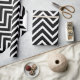Custom wrapping paper rolls with chevron pattern in black and white for the holidays.
