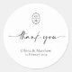 Chic and elegant with minimalist aesthetic. This lovely minimalist wedding thank you sticker features a contemporary set of fonts and wedding couple monogram against a crisp white background.