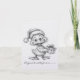 The simplest black and white Christmas note card featuring a duck holding a Christmas gift, and text