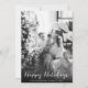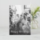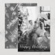 A very unique and elegant stylish minimalist and modern black and white Christmas card. Which features a minimalist customisable full family photo. With white informal whimsical calligraphy of happy holidays. And under it the family name and years which can be both changed by clicking on the personalised button. And in the back of the card, we black and white line art eucalyptus and snow. Grab this elegant and unique Christmas card and send your family and friends your Christmas greetings with elegance and style.