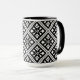 Mug with nordic knitting inspired black and white snowflakes christmas pattern.