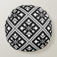 Round pillow with nordic knitting inspired black and white snowflakes christmas pattern.