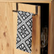 Kitchen towel with nordic knitting inspired black and white snowflakes christmas pattern.