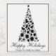 Simple and elegant modern black and white Christmas tree holiday wine label.