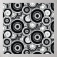 This piece was created in Adobe Illustrator and features a retro circle pattern in black and white.