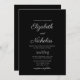 the design shows a wedding invitation in white classic calligraphy and typography with black background. this design is aesthetic,unique and classic and will be perfect for your wedding.