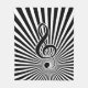 Classical and chic black and white treble clef musical note on a retro styled black and white starburst background.