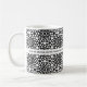 Crisp geometric design in black and white. Classic and stylish never goes out of fashion. The pattern is divided in the middle by a white line in order to personalise the mug, add the text of your choice.