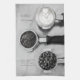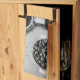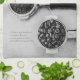 This is a kitchen towel showing images of coffee beans, coffee grounds and a cappuccino. It also features dictionary style text explaining what coffee is. All done in a distressed, slightly vintage or retro style.
