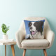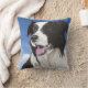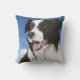 This lovely throw pillow is one of a pair and features my three quarter portrait of a Black and White Collie, with brown eyes against a blue sky. Lovely to brighten up the sofa.