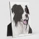 This design features my drawing of a Black and White Border Collie, based on my own pet Gypsy. It is a characteristic pose, showing her face from the side, panting in the anticipation of a game, also reflected in her gentle brown eyes.