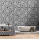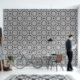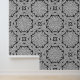 This peel and stick wallpaper boasts a captivating geometric pattern that seamlessly blends modern tribal aesthetics with timeless appeal. The design features intricate concentric diamonds radiating from central hexagonal stars, creating an optical illusion of depth and movement. The sharp lines, bold black-and-white contrast, and repetitive symmetry define its contemporary graphic style. Perfect for adding sophistication and edginess to any interior space, this wallpaper is a standout choice.
