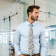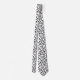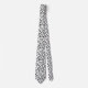 This tie features an abstract black line art pattern on a white background.