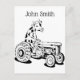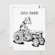 A funny illustration for anyone who loves cows or tractors . a black and white cow driving a tractor on a farm. Funny farm life animal themed design