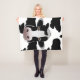Striking cow pattern fleece blanket, with cartoon cow's face. Funny, cute cartoon cow print design.