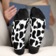 These fun patterned socks have an all over black and white print that has the look of a cow's hide. It's perfect for doing your best impersonation of a cow.