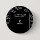 Celebrate your graduate with custom black and white buttons. Featuring the text, "Congrats! Class of 2025." It has a classic black background with an inspirational Adventure Awaits arrow pattern. Also, your desired monogram and name is displayed. Use the template to personalise.