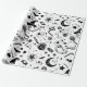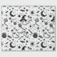 A cute black and white line art design featuring a ghost adorned with a witch hat, surrounded by iconic Halloween elements like a pumpkin bucket, candy canes, lollipops, a bat, and celestial bodies. This minimalist design adds a touch of intrigue to your gift.